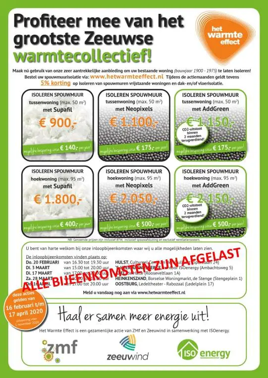 Ook de Warmte Effectbijeenkomst in Oostburg op 16 april is afgelast.
