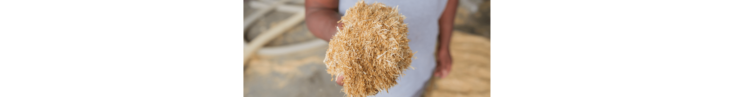 Daarnaast zorgt de open vezelstructuur voor goede geluidsabsorptie, en door de densiteit is het materiaal ook geschikt voor een brandveilige toepassing. Stro scoort bovendien goed op duurzaamheid: het is lokaal beschikbaar, circulair en slaat CO₂ op tijdens de groei.