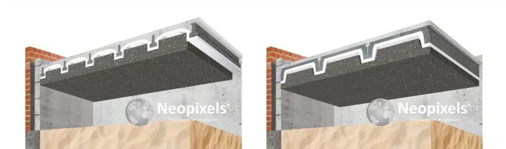 Jarenlang was er geen goede oplossing om dit isolatiepakket van de begane grondvloer te verbeteren. Daar is nu een zeer innovatieve manier van na-isolatie voor ontwikkeld. Met het Neopixels Easy Inserts Floor Insulation systeem kan de isolatiewaarde van de geïsoleerde begane grondvloer aanzienlijk worden verbeterd. Met dit systeem behaal je het maximale rendement qua vloerisolatie. Deze te behalen isolatiewaarde ligt zelfs hoger dan de standaard normen die nu gelden voor nieuwbouwwoningen.